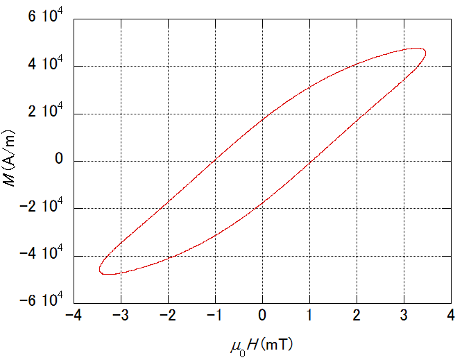 | 当研究室で開発した磁気計測システムで取得したM-Hカーブ(Resovist, 20 kHz) [2] |